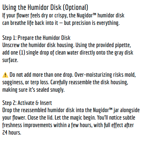 +1 x Humidor Disk (optional for flower rejuvenation, see instructions)